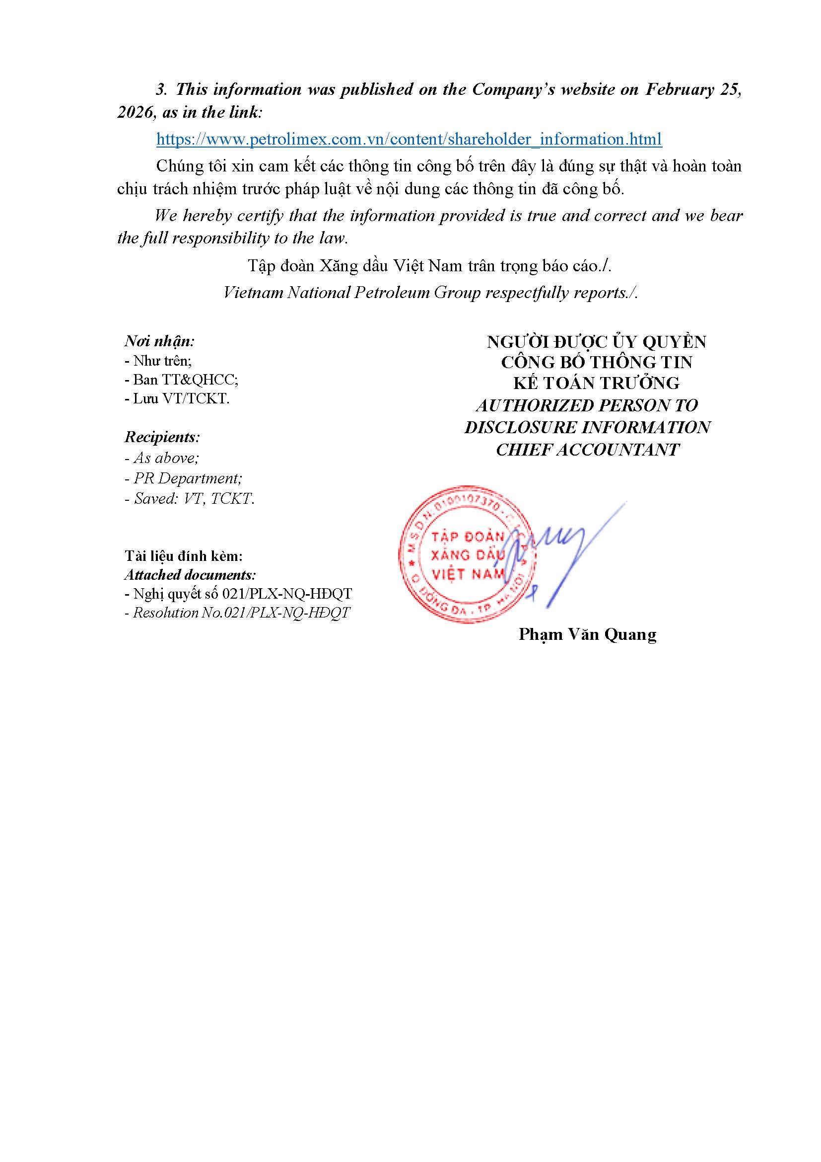 Cam kết nỗ lực không ngừng để tiến xa hơn trên con đường phát triển và đưa cuộc sống của người Việt Nam cùng toàn thể người lao động Petrolimex lên tầm cao mới trong tương lai